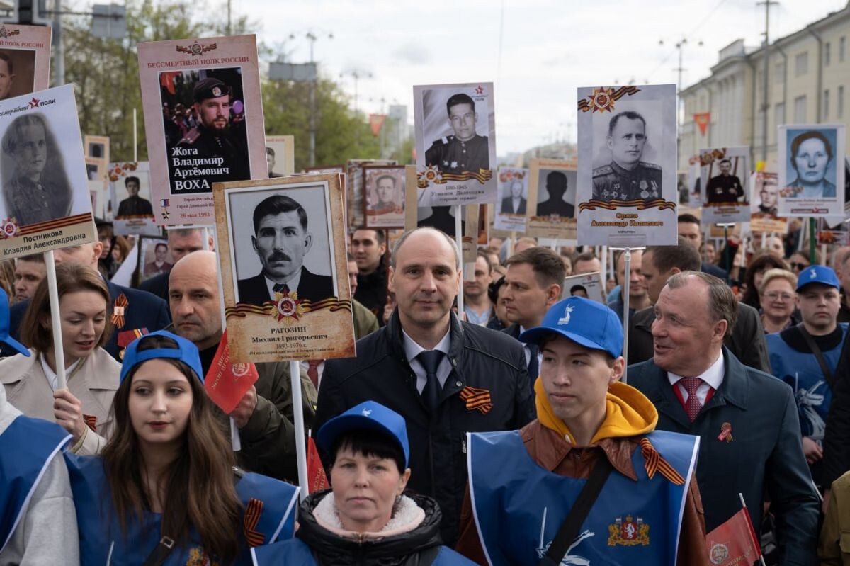 Врио губернатора Свердловской области Денис Паслер вместе с полпредом Артемом Жогой возглавил шествие Бессмертного полка в Екатеринбурге. В руках глава региона держал портрет прадеда Михаила Григорьевича Рагозина, который воевал на Втором Белорусском фронте.