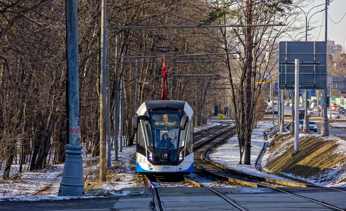 Приветствую! Сегодня немножко прогуляемся вдоль трамвайной линии от метро "Сокол" по Волоколамке в сторону парка Покровское-Стрешнево. Начинаем путь от трамвайного кольца "Метро "Сокол" где, в момент, когда я там проходил, как назло, не оказалось ни одного трамвая, хотя курсируют аж 4 маршрута: 6, 15, 23 и 28. Первый вагон я узрел и сфоткал, когда отошёл вдоль линии от кольца метров на сто. Им оказался Витязь 15-го маршрута. Круглое стеклянное здание-полусфера внутри кольца - диспетчерская Гормоста: Следом ехала 6-ка. В момент съёмки, вагон заезжал на остановку "Гидропроект".