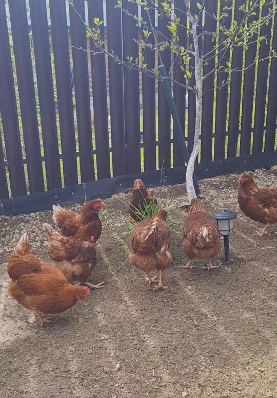 Крыша: Полностью закрытая крыша (из сетки, ткани или другого материала) - самая надежная защита от хищников, особенно от птиц-хищников и от дождя. Однако, это более дорогой и трудоемкий вариант. Если вы не делаете полную крышу, можно натянуть сетку над частью выгула, чтобы создать тень и некоторую защиту от хищников. У нас опять же повторюсь с этой целью в выгуле растут плодовые деревья, которые закрывают наших девчонок от хищников с неба.