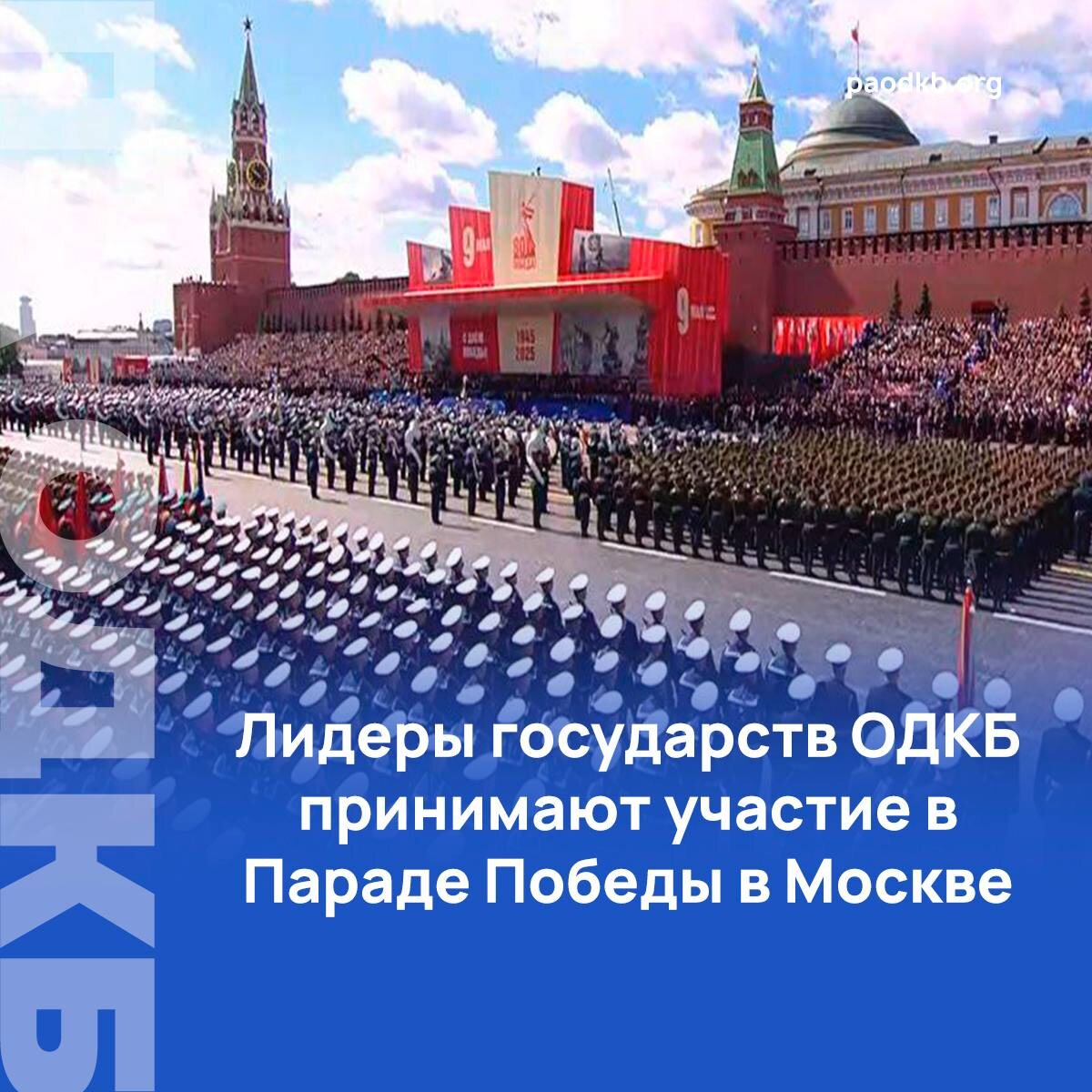 💪 9 мая по приглашению Президента России Владимира Путина в Москву для участия в Параде, посвященном 80-летию Победы в Великой Отечественной войне, прибыли лидеры государств-членов ОДКБ. 💪 В торжествах по случаю юбилея Великой Победы принимают участие премьер-министр Армении Никол Пашинян, Президент Беларуси Александр Лукашенко, Казахстана Касым-Жомарт Токаев, Кыргызстана Садыр Жапаров, Таджикистана Эмомали Рахмон, а также Президент Сербии (наблюдателя в ПА ОДКБ) Александр Вучич. 💪 Напомним, в Параде Победы на Красной Площади принимают участие парадные расчеты оборонных ведомств из 13 стран - Беларуси, Казахстана, Азербайджана, Узбекистана, Китая, Таджикистана, Туркменистана, Вьетнама, Египта, Монголии, Мьянмы и Лаоса. 💪 На Параде присутствуют лидеры из 29 стран и представители министерств обороны 31 страны. Подробно ➡️ paodkb.org Сайт | VK | Fb | X | Instagram | dzen