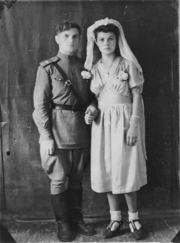 Это свадебная фотография старшины Николая Седнева и его невесты, партизанки Клавдии, сделанная в Краснодаре в 1946 году