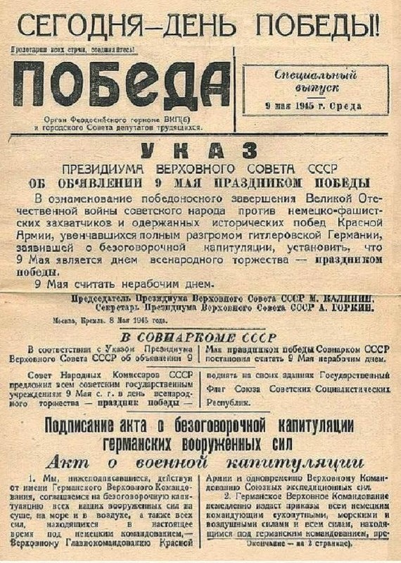 9 мая 1945 года не только телевидение и радио сообщали о Победе
