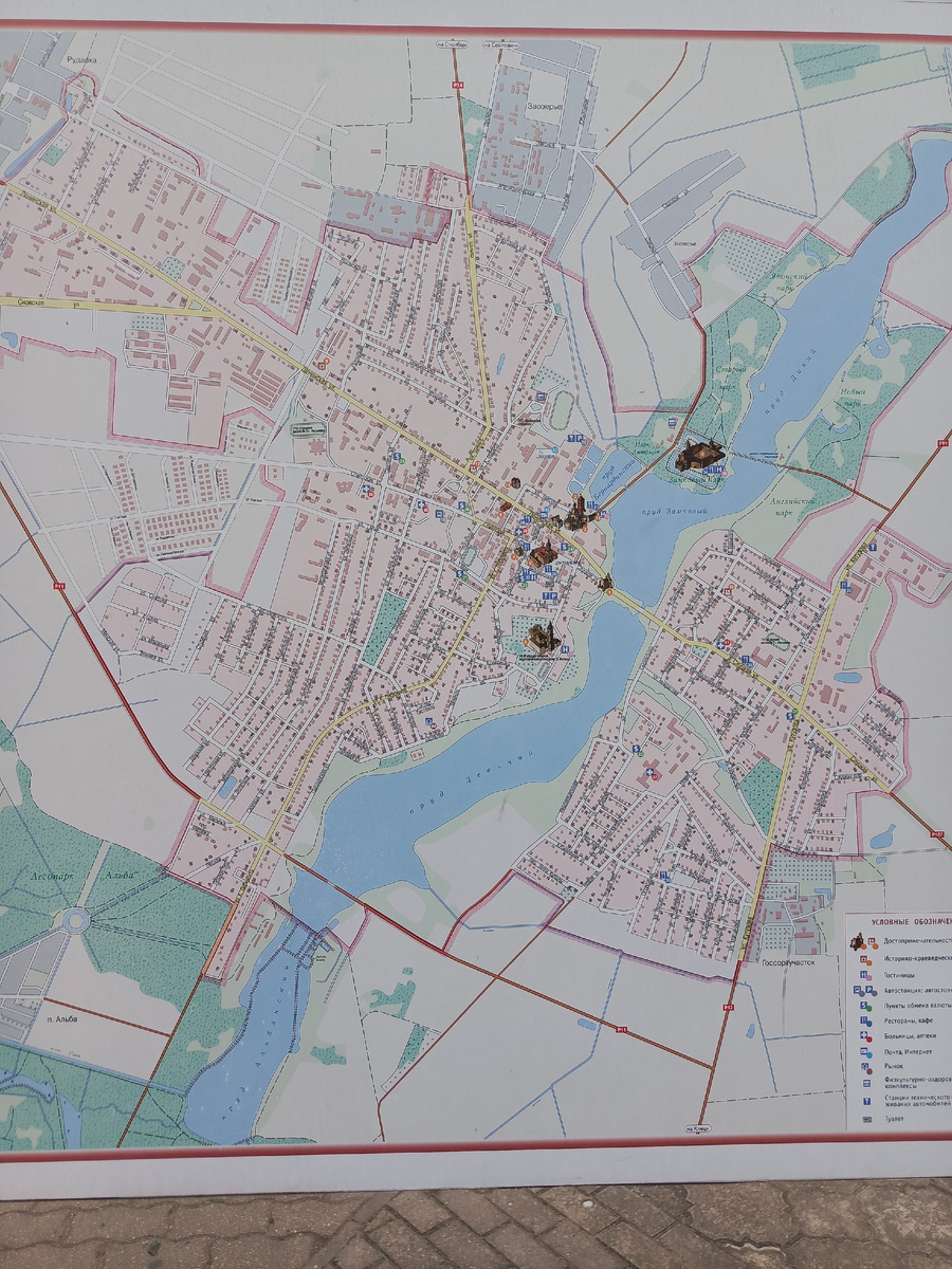 До Несвижа доехали по расписанию, в 13.25. Там перекусили на лавочке бутербродами, захваченными с собой из дома, и пошли искать замок. На улицах встречается карта: