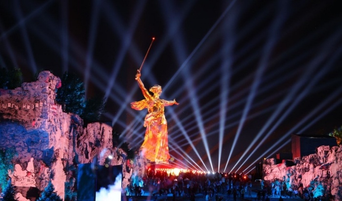 Жители и гости города-героя наблюдали масштабную инсталляцию на Мамаевом кургане и у музея-панорамы «Сталинградская битва».