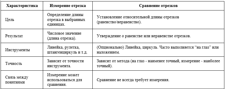 Сравнение и измерение отрезков — два взаимосвязанных, но разных понятия в геометрии.