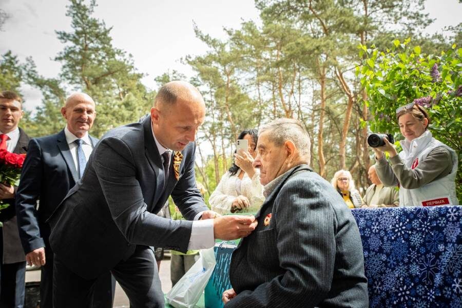 В День Победы и.о главы Курска Сергей Котляров и председатель Курского горсобрания Владимир Токарев навестили 98-летнего ветерана Великой Отечественной войны Ивана Борзенкова.