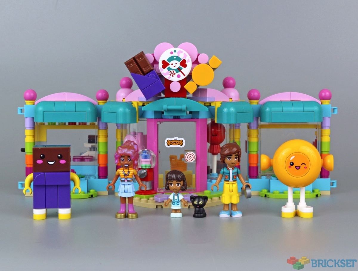 42649 Heartlake City Sweet Shop — обзор Наконец-то в Хартлейк-Сити появилась кондитерская! Набор из 376 деталей поражает яркими цветами и продуманными деталями: от огромных сладких талисманов до мини-кукол с потрясающими аксессуарами. Особенно выделяется розово-фиолетовая причёска продавщицы Джиджи — просто конфетка! Внутри — три секции: кухня для приготовления сладостей, витрина с шоколадом и зона «собери сам» с леденцами и жвачками. А ещё тут есть кот Плуто, который, кажется, слишком увлёкся сладким... Отличный вариант для фанатов Friends — много игровых возможностей и приятная цена. Источник: Brickset