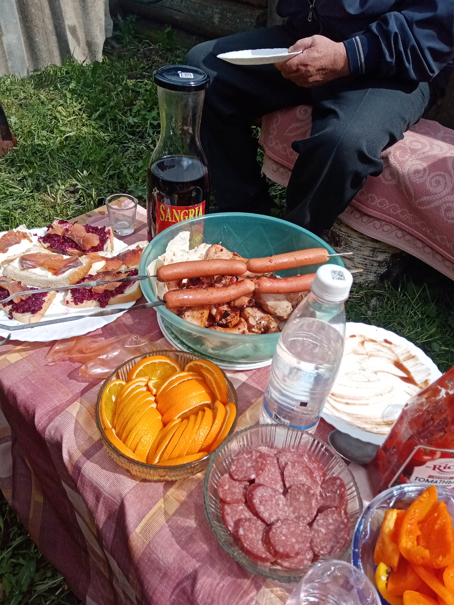 Пятница 09.05.25 Поздравляю всю нашу страну с праздником Победы!!! В честь праздника немного посидели сегодня с родителями, шашлык, все дела. Я за моими родителями ездила в город, назад уехали на такси. На солнышке сегодня даже жарко. Но ветер сильный, огонь даже загораживали шифером. Посидели недолго, папа засобирался домой. Я дольше готовила, чем сидели. А кроме шашлыка практически ничего не ели. Вчера вечером горбушу засолила, свеклу отварила. Сегодня наделала бутербродов, отварила картофель, различные нарезки, но когда есть мясо больше ничего не надо. Ещё мариновала шампиньоны. На шампурах делали. Вкусно. Муж не понимает. На парад в этом году ходила только дочь, в городе. Вчера осталась ночевать у бабушки. Я раньше каждый год посещала все мероприятия, а теперь вообще никуда не хочу. Хочу побыть подальше от скопления людей. Может возраст, а может сельская жизнь стала сказываться. Вчера ездила на ногти, мало того весь день дождь лил, так ещё везде всё перекрыли. Проходил л
