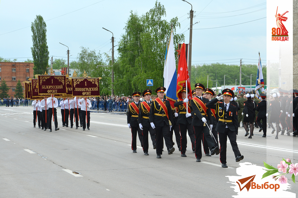 «Парад! Равняйсь! Смирно! К торжественному маршу. Знаменная группа — прямо, остальные — направо! Дистанция — 10 метров, равнение направо. Шагом марш!» — рапортовал военный комиссар города, и участники парада, выстроившись в шеренги, начали свой марш по улице Октябрьской, приветствуя ветеранов и горожан.