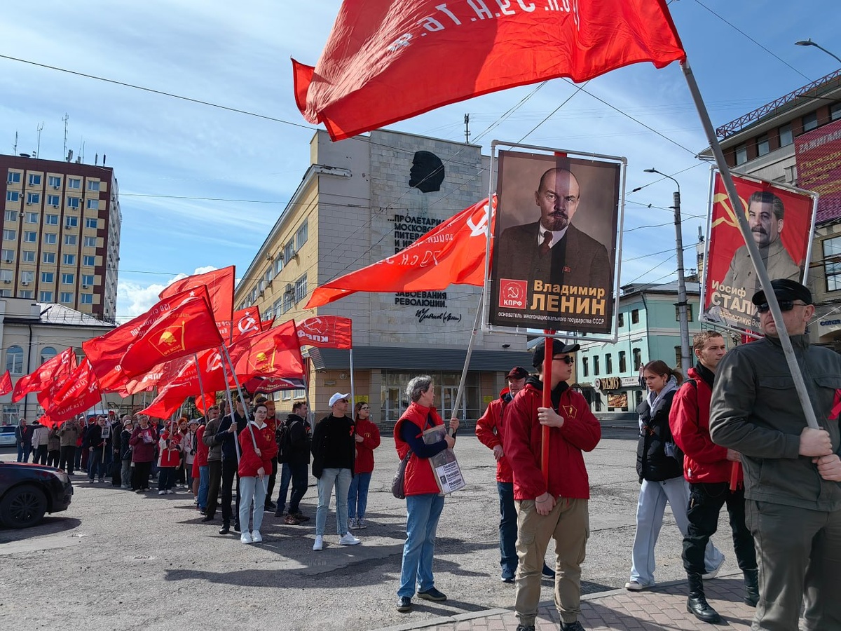 ΠΠΎΠ΄ΠΎΠΉΠ΄Ρ ΠΊ ΠΌΠ΅ΡΡΡ ΠΏΡΠΎΠ²Π΅Π΄Π΅Π½ΠΈΡ ΠΏΠ°ΡΠ°Π΄Π°, ΠΊΠΎΠΌΠΌΡΠ½ΠΈΡΡΡ ΡΠ°Π·Π΄Π°Π²Π°Π»ΠΈ ΠΏΠΎΠ·Π΄ΡΠ°Π²ΠΈΡΠ΅Π»ΡΠ½ΡΠ΅ ΠΎΡΠΊΡΡΡΠΊΠΈ ΠΈ Π»Π΅Π½ΡΠΎΡΠΊΠΈ ΡΠΎ ΠΠ½Π°ΠΌΠ΅Π½Π΅ΠΌ ΠΠΎΠ±Π΅Π΄Ρ.