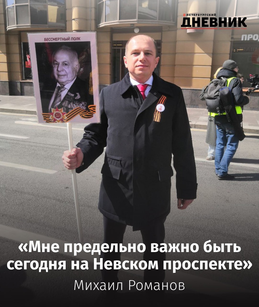 Одним из участников шествия «Бессмертного полка» стал депутат Государственной думы Михаил Романов. Он вышел с портретом своего деда, который с начала войны работал на заводе, точил снаряды — с 15 лет, в тылу, не менее героически, чем на фронте.