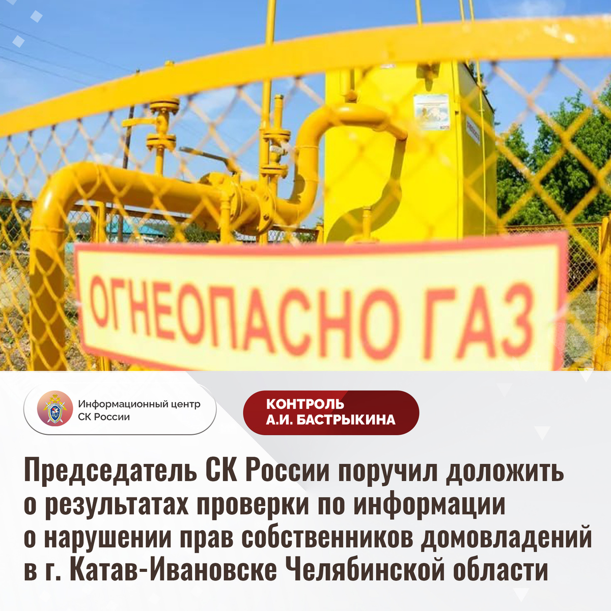 Председатель СК России поручил доложить о результатах проверки по информации о нарушении прав собственников домовладений в г. Катав-Ивановске Челябинской области В сети Интернет сообщается о нарушении прав собственников 72 домовладений по улице Карла Маркса в городе Катав-Ивановске Челябинской области. На протяжении трех лет представители организации, несмотря на заключение договоров, не выполняют работы по присоединению жилых зданий к сетям газоснабжения, завершение которых планировалось до декабря прошлого года. Многочисленные обращения результатов не принесли. В СУ СК России по Челябинской области по данному факту организована процессуальная проверка. Председатель Следственного комитета Российской Федерации Александр Иванович Бастрыкин поручил руководителю СУ СК России по Челябинской области Алексею Ивановичу Колбасину доложить о предварительных и окончательных результатах процессуальной проверки. Исполнение поручения, а также ход процессуальной проверки поставлены на контроль в це