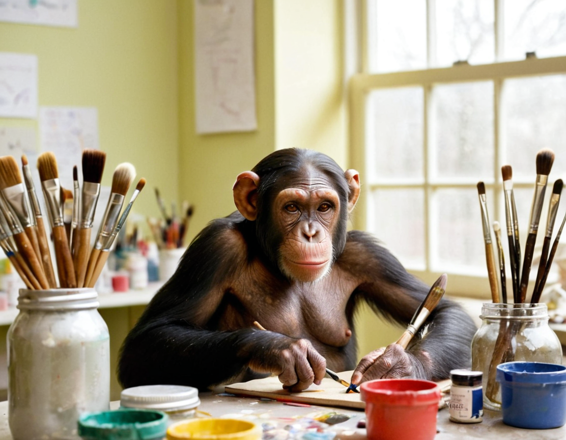 Один из самых известных экспериментов с творческими способностями животных был проведён в середине 1950-х годов в США. Целью исследования было понять, могут ли обезьяны проявлять не только интеллект, но и эмоциональную вовлечённость в процесс создания — другими словами, можно ли говорить о чём-то похожем на творчество. В центре внимания оказались шимпанзе, так как они считаются одними из самых умных представителей животного мира. Исследование проводилось в контролируемой лабораторной среде, где учёные создали для животных условия, максимально приближенные к естественным, но с возможностью наблюдения за их поведением в процессе взаимодействия с художественными материалами. Главной участницей стала молодая самка шимпанзе по имени Вики. Она жила в семье психолога Билла Келлога, который вместе со своей женой пытался воспитывать её как ребёнка. В рамках этого проекта Вики научилась использовать простые слова, выражать свои желания и даже реагировать на эмоции людей вокруг. Когда дело дошло