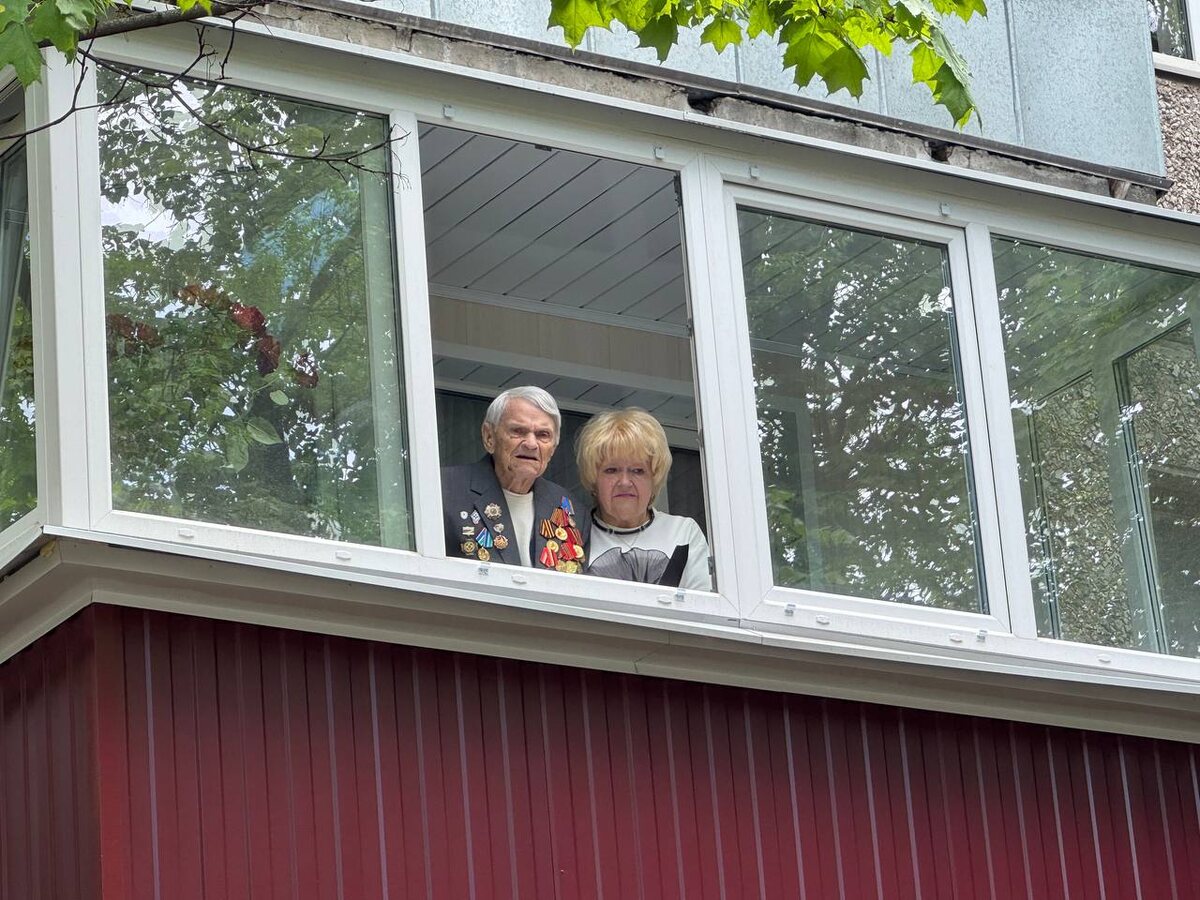 В Курске ветерана Евгения Будкина поздравили торжественным парадом у дома