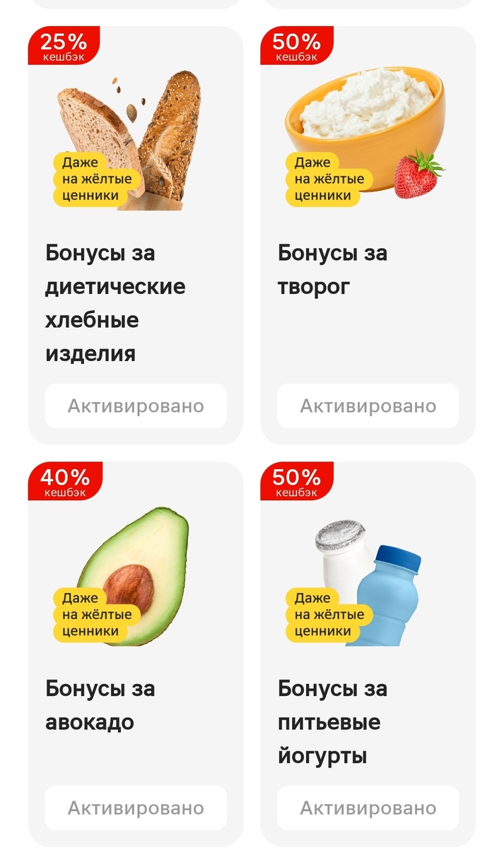 С утра встала с хорошим самочувствием, вчерашней заразы как не бывало, только горло ещё болит... Раз на дачу уже не поехала, решила пробежаться по магазинам , чтобы потом с чистой совестью залечь под плед под какой-нибудь уютный сериальчик... Итак, кто чем порадовал)) Дикси - куплен очередной килограмм яблок за 1 рубль, если у вас ещё остались сим-карты, на которые не зарегистрирован аккаунт Дикси, очень рекомендую эту акцию. Магнит - предложил 50% кешбек на творог и питьевые йогурты и 40% кешбек на авокадо. Питьевые йогурты у нас никто не любит, так что взяла творог на сырники и авокадо, его очень люблю. Также потратила купоны из игры Магнита, где нужно резать овощи, мне выпала 50% скидка на кетчуп, колбасную нарезку и молотый перец, все нужно, всё забрала. Расскажите , у вас такие же персональный предложение или что-то другое? Ну и под конец забежала в Пятёрочку, благо у меня все магазины рядом с домом. Взяла латте за 99 рублей , 99 рублей вернёт Альфа банк и 50 апельсинок начислит П