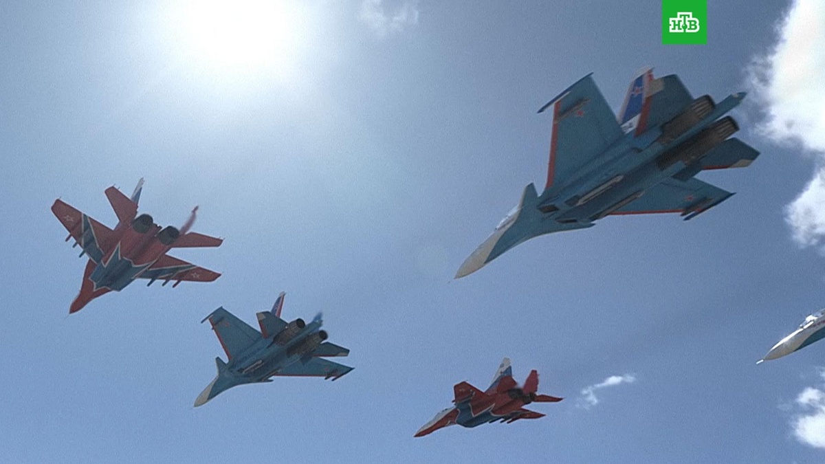 [ Смотреть видео на сайте НТВ ] Штурмовики на истребителях Су-25 раскрасили небо над столицей в цвета российского триколора. В Москве закончился парад, посвященный 80-й годовщине Победы в Великой Отечественной войне. Традиционно проход военной техники по Красной площади завершили пилоты. В небо над столицей поднялись авиационные группы высшего пилотажа «Русские витязи» на Су-30СМ и «Стрижи» на МиГ-29, а также штурмовики Су-25, раскрасив небо в цвета российского триколора. В этом году на параде Победы впервые были представлены войска беспилотной авиации, а также тяжелые огнеметные системы ТОС-2 «Тосочка» и артиллерийские системы «Мальва». А первым из военной техники по брусчатке Красной площади прошел танк Т-34, который считается одним из символов Победы в Великой Отечественной войне. За ним проследовала колонна бронированных автомобилей и зенитных ракетных систем С-400 «Триумф», а также мобильный ракетный комплекс «Ярс». Круглосуточный канал к 80-й годовщине Победы в Великой Отечествен