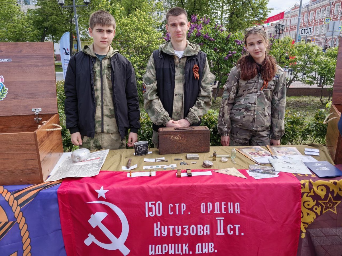 🇷🇺 В сквере Гончарова поисковые движения представили оружие и предметы времён Великой Отечественной войны