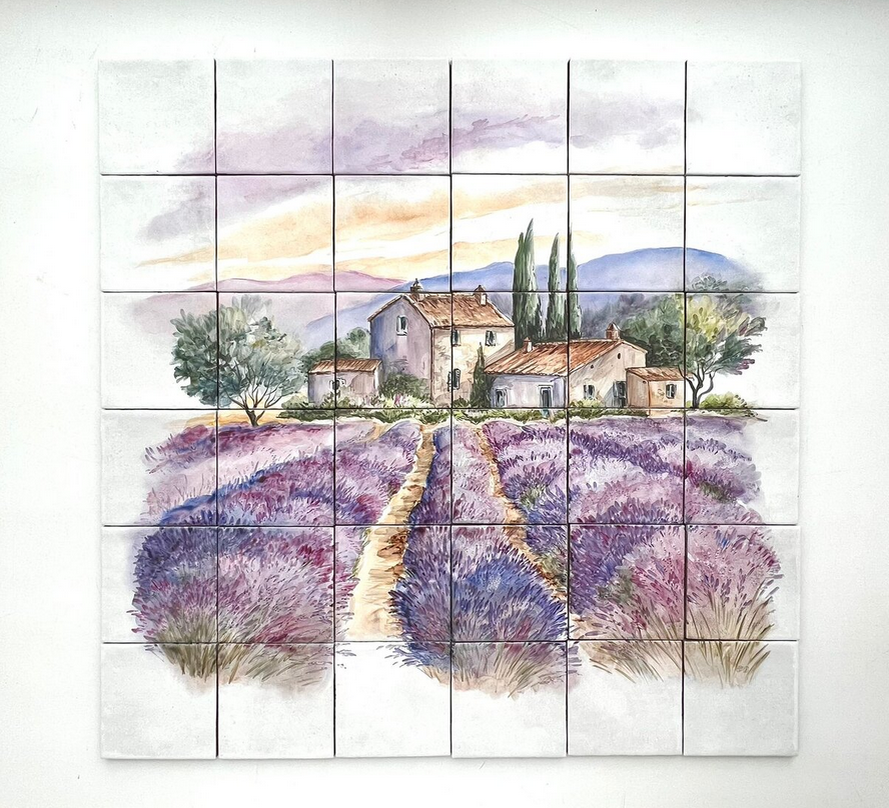 Прованс - одна из моих давних и самых любимых тем. И не только моих. Кто не любит уютный Прованс? Вот и заказчики периодически подкидывают идеи - то "фартук" расписать для кухни, то декоративные тарелки на стену, зеркало, посуду. А я рада стараться… Прованс - тема очень домашняя. Четких границ здесь уже давно нет. Скорее это игра в ассоциации. А они могут быть разные. Сельские пейзажи, деревенская живность с обязательным символом французского кантри - Петухом. Ароматы цветущих альпийских лугов, лавандовых и маковых полей... Прованс - это и продукты питания, домашние сыры, вино, фрукты, высушенные пряные травы. В любом случае, стиль создает теплую атмосферу и особенно подходит для кухни. Сегодня собрала небольшую подборку работ разных лет. Сиренево-фиолетовые ряды цветущей лаванды - визитная карточка Прованса. Размер панно 60 на 60 см. На заметку. Кухонный фартук - это панно из керамической плитки для стены над варочной панелью кухонного гарнитура. Еще одна работа в похожем стиле: Н
