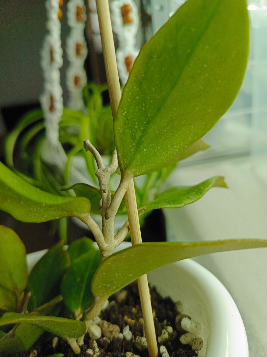 Помогите пожлайуста советом. У хойи Санрайз с нижней стороны листа появился белый налет. Он легко убирается и вновь появляется. Что это может быть и как с этим бороться?
