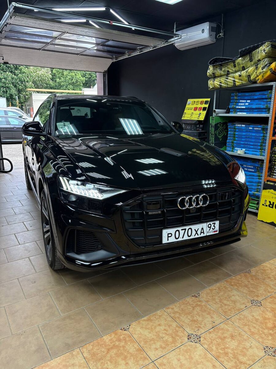 Audi Q8 2024 модельного года из Кореи Переходная модель 2023 года производства с кузовом до рестайлинга, но электроникой от рестайлинга. Поэтому стоит защита SFD2 и русификацию сделали полную с навигацией с сохранением беспроводного Apple CarPlay и Android Auto