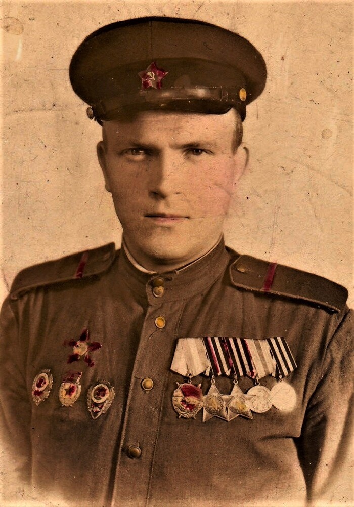 В моем доме есть семейный альбом. В нем много фотографий и документов прошлых лет. Есть и вырезки из газет. С фотографий, которым более 80 лет, смотрит на меня молодой серьезный военный, грудь которого в орденах. Награды: орден Красного Знамени, Красной Звезды, ордена Славы 1-й, 2-ой и 3-й степени, медали и нагрудный знак "Отличный разведчик".