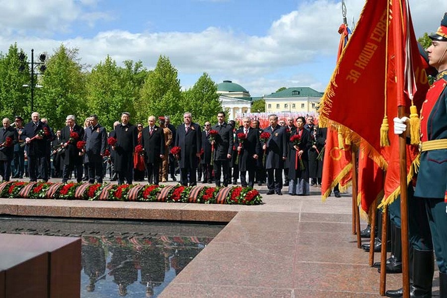 Александр Лукашенко вместе с зарубежными лидерами возложил цветы и венок к Могиле Неизвестного Солдата у стен Кремля