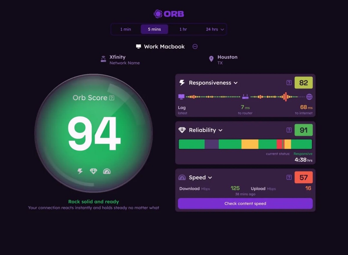 Разрабы Speedtest выпустили метовый софт для оценки качества интернета. Orb анализирует не только скорость, но и пинг, потери пакетов и джиттер, после чего выдаёт итоговую оценку соединению. Ссылка 👉 orb.net/get-orb/windows Наш канал: 👉 proit_world #speedtest