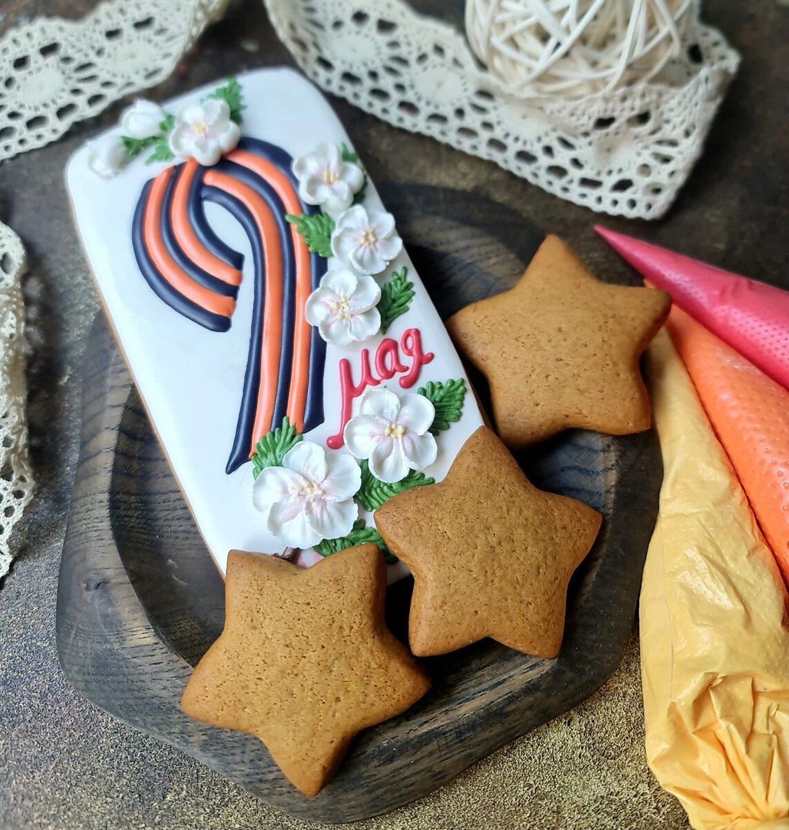 Поздравляю всех с Победой 1945 года! И хочу немного рассказать об акции, к которой мы присоединились нашим Московским отделением Гильдии мастеров пряничного дела и знаменщиков 🔥Всероссийская акция «Помним, благодарим, гордимся!» прошла в разных регионах России среди пряничных мастеров и студентов колледжей, чтобы отдать дань уважения тем людям, нашим бабушкам и дедушка , благодаря которым мы сегодня живём, любим, растим детей. 🍥Для этой акции я разработала два дизайна расписных пряников. Один - для опытных мастеров, другой - полегче, который как раз подошёл начинающим пряничным мастерам, студентам колледжей. Мой друг и коллега из нашего московского отделения Гильдии - Елена Леонова подготовила видео инструкцию и рецепт для печатного пряника. С большим трепетом мы наблюдали, как количество участников акции росло, и как пряники делали разные регионы России. Как пряничные мастера вместе со студентами делали эти пряники для ветеранов, дарили и получали потрясающие отзывы. ‼️28 р