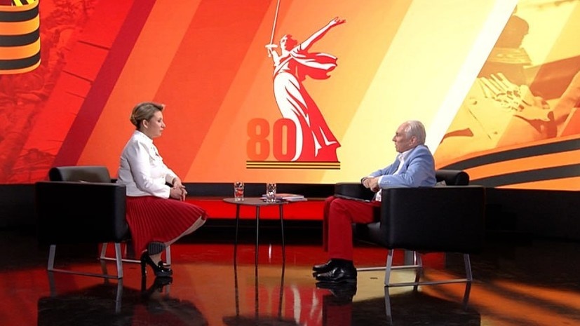 — Спасибо, что позволили сегодня с вами поговорить. Прежде всего я хотел бы показать Германии, что в России можно говорить со всеми людьми, что невозможно в Германии. И я горжусь тем, что нахожусь здесь 9 мая и праздную этот день вместе с россиянами... Прошло уже 80 лет с той страшной войны. Сначала немцы вообще не понимали, что это значит — победа над национал-социализмом. Но с течением времени, я думаю, в связи с годовщиной всё чаще говорят, что для молодёжи это была не только победа над нацистами, но и победа ради мира, которым мы наслаждались долгие годы... Как вы думаете, спустя 80 лет после этой ужасной войны немцы поняли это?
