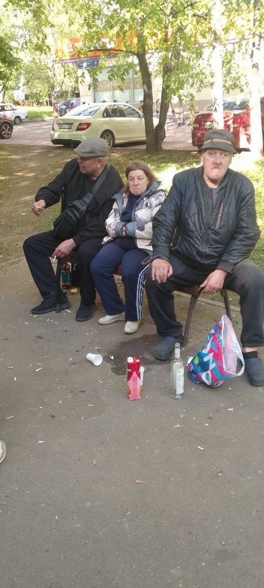 ✏️ Подслушано в Гольяново: Около Дикси на камчатской дом 6 сидят вот такие пропитые рожи, утром, днем ,вечером.И это только малая часть бухающей компании. Публика весьма разнообразная от мала до велика и мужчины и женщины, всех их объединяет пьянство. Обоссано и засрано всё кругом, куча бычков, плевков и бутылок, пьяный ор и мат. Однажды наблюдала картину как один из собутыльник сидел и писал прям в штанах в на лавку... Ну это ужас товарищи, неужели никто не жалуется и всем приятно наблюдать эту картину??? Кб с другого конца этой аллеи закрыли, так они теперь возле Дикси корни пустили ... Почему их не гоняет полиция? Как изжить эту нечисть? Опубликуйте анонимно пожалуйста #гольяново #golyanovo #вао Гольяново | ВКонтакте | Предложить новость