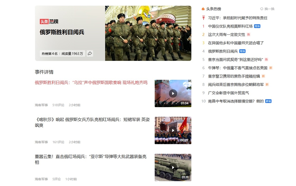 Мы с вами примерно представляем, как реагирует западная публика на демонстрацию силы и единства России: традиционно брызгает слюной и ядом. Но мне стало интересно посмотреть, что пишут китайцы, которые посмотрели сегодня Парад Победы на Красной Площади. Тем более в нем принимали участие и китайские военные. Я с некоторыми трудностями (связанными с необходимостью регистрации) смог промониторить несколько китайских социальных сетей и спешу поделиться с вами тем, что я там увидел.