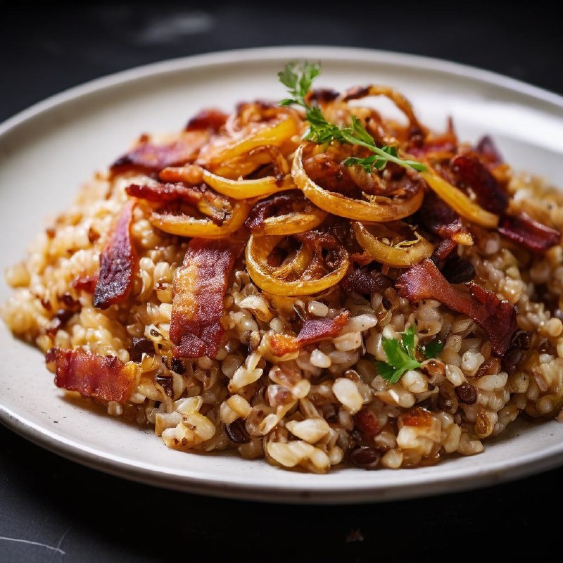 🥣🔥 ПЕРЛОВКА С ЖАРЕНЫМ ЛУКОМ И САЛОМ — ОБЕД, КОТОРЫЙ ДАВАЛ СИЛЫ И ВЕРУ 🔥🥣 Когда готовлю это блюдо, я всегда молчу. Потому что оно — о памяти. О тех, кто выстаивал, когда земля дрожала от взрывов, а хлеб был роскошью. Это не просто обед — это настоящий фронтовой символ. Перловка с жареным луком и салом — так питались солдаты на передовой и женщины в тылу. Иногда без сала, иногда без лука. Но если удавалось достать всё сразу — это был праздник. Я готовлю эту перловку с уважением. Как будто рядом сидит мой прадед. Я слышу, как шкворчит сало, как лук становится золотым, а крупа томится в котелке. Это не гастрономия. Это — сила духа, вложенная в ложку еды. ✨ После такой тарелки ты не просто насытился — ты будто встал ровнее. Внутри появляется спокойствие, уверенность, как будто кто-то незримо положил тебе руку на плечо и сказал: «Ты справишься». ________________________________________ 🥄 Ингредиенты (на 1 порцию): o Перловая крупа – 70 г (800 г – 80 ₽) o Сало (солёное или копчёное) –