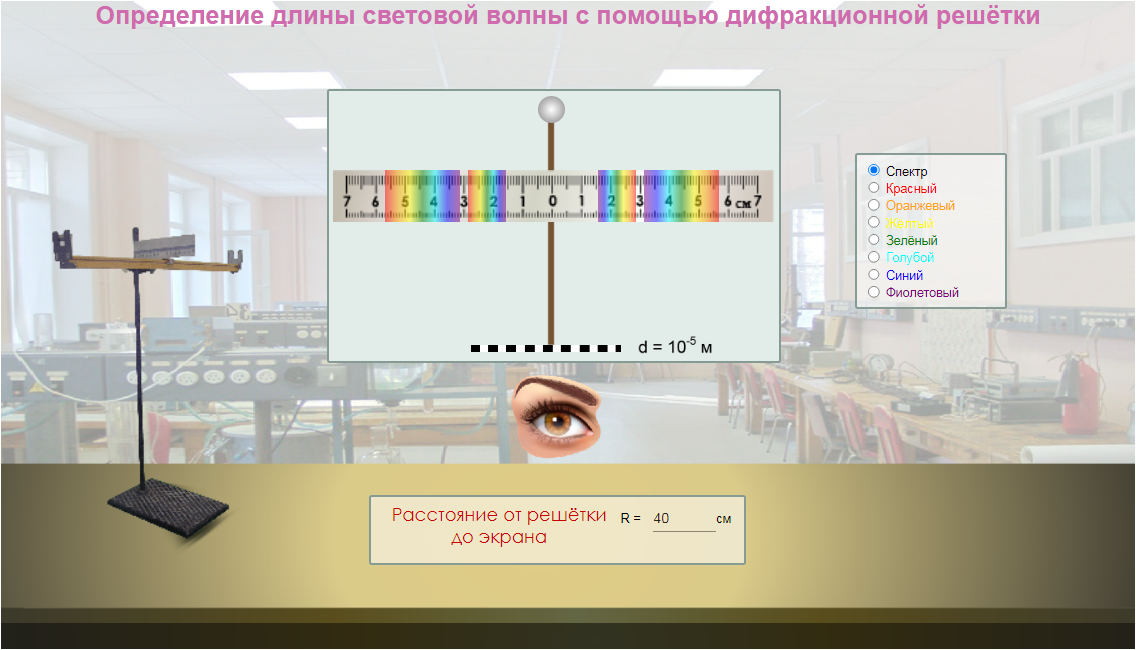 04. Виртуальная лабораторная работа по физике «Определение длины световой волны с помощью дифракционной решётки»