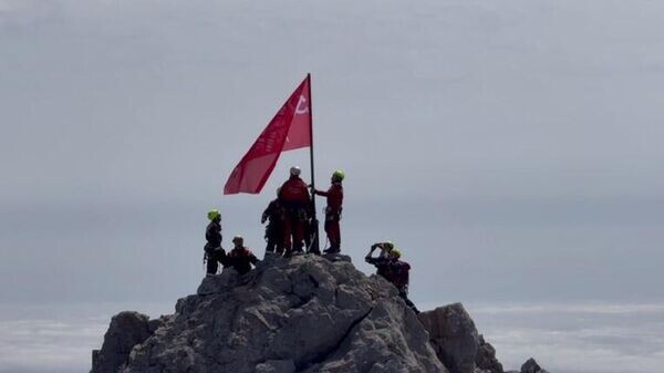 Крымские спасатели водрузили Знамя Победы на вершине Ай-Петри