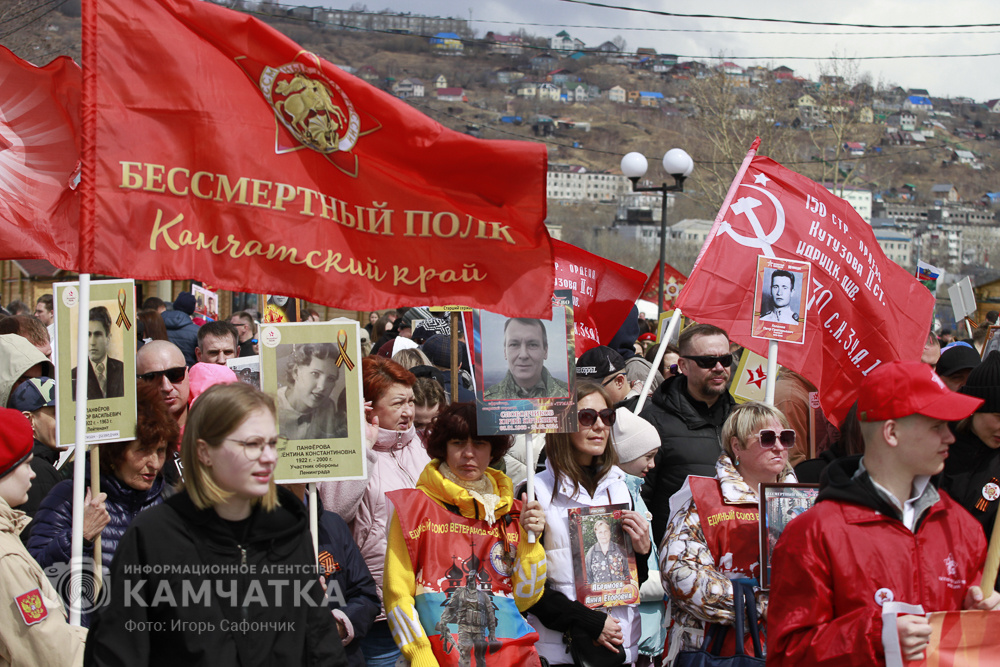9 мая 2025 года в Петропавловске-Камчатском состоялось долгожданное шествие "Бессмертного полка" в традиционном формате — впервые за последние три года, передает ИА «Камчатка». Участники акции прошли по улице Озерновская коса, держа в руках фотографии своих родных — ветеранов и участников Великой Отечественной войны и бойцов специальной военной операции. Погода была по-настоящему праздничной: яркое солнце создавало особую атмосферу, в шествии участвовало несколько тысяч горожан, в колонне шли целыми семьями. Смотрите фоторепортаж на сайте информационного агентства «Камчатка».