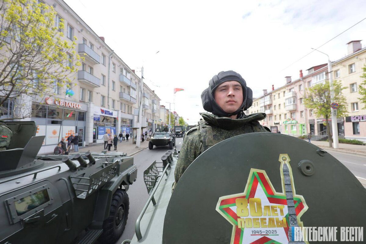 Впервые за несколько лет в Витебске состоялся военный парад🫡 Прошли 🔟 расчетов воинских частей, силовых структур, правоохранительных органов, Витебского кадетского училища. Всего в параде участвовало 3️⃣6️⃣0️⃣ человек и 2️⃣3️⃣ единицы техники, в том числе - шесть раритетной. #БеларусьПомнит #нашчадкіПерамогі #80летПобеды