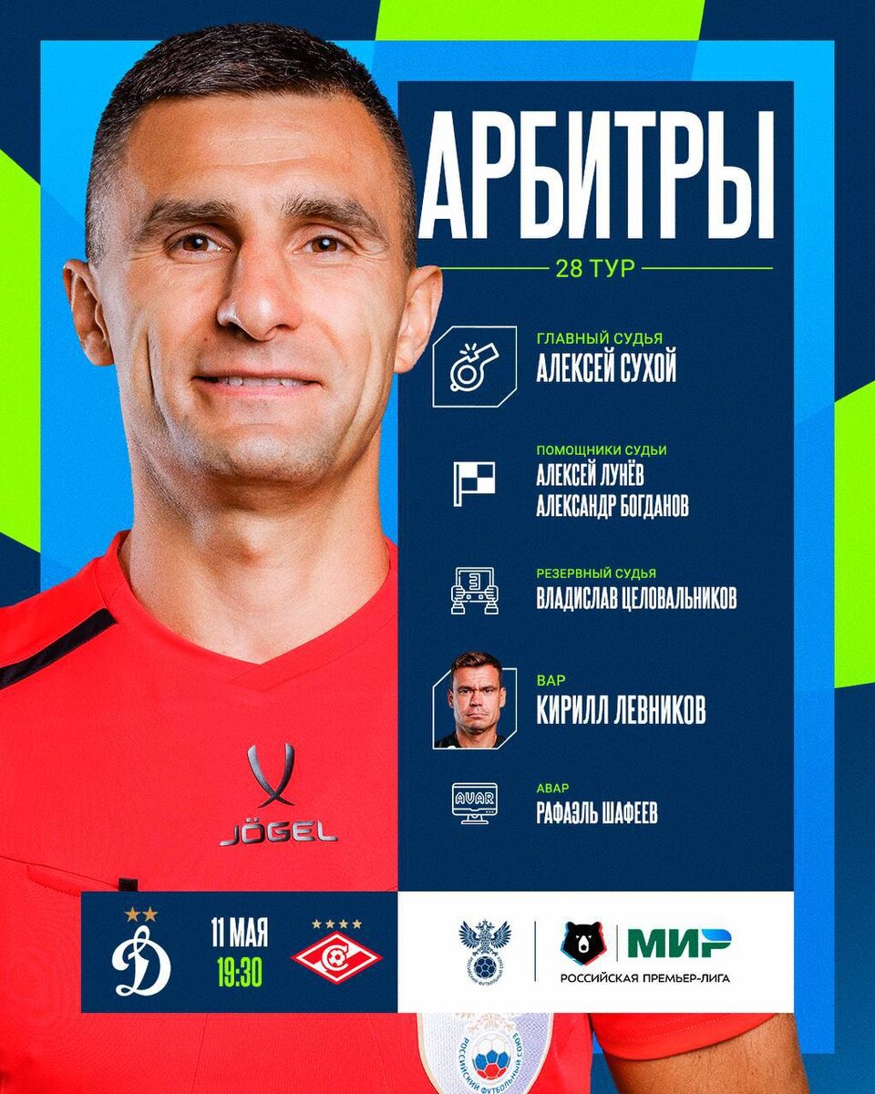 Алексей Сухой назначен главным арбитром матча 28 тура Мир РПЛ #Динамоспартак