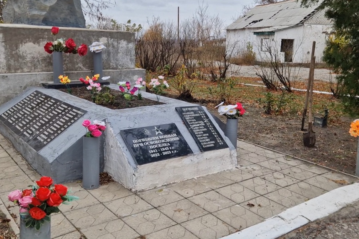 Памятник погибшим воинам при Освобождении поселка Тошковка. ЛНР. 1941-1945 гг, 2022-2023 гг. Тошковка почти полностью разрушена. Живет сто человек в этом когда-то многотысячном богатом шахтерском поселке. А сейчас целые улицы разрушенных многоэтажек. Электричества нет, воды нет - да ничего нет. Руины кирпичей и ветер, носящий листья между ними. Уходя, "немцы" разбили целую улицу домов. "Да не достанься ты никому" - прям так и говорили местным в лицо. Били артой намеренно по жилому сектору, где еще были люди, и ВСУ это точно знали. Били от злости и немощи. ("Немцами" называют многие на Донбассе военных страны У.) Мы там были в ноябре. Стоял жуткий холод, пронизывающий до костей. Едешь, а вдоль дороги дома с черными глазницами и разрушенными до основания подъездами, что кажется попал в Припять, где нет жизни. Но в центре женщины подметали улицы. Весело, с вениками и шутками. Принесли цветы к памятнику, который по бокам огорожен табличками "Мины". Субботник. В поселке живут почти одни пож