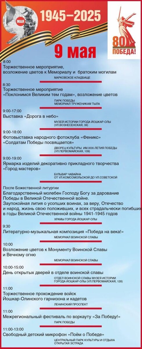 Напоминаем, какие праздничные мероприятия проходят в Йошкар-Оле на День Победы