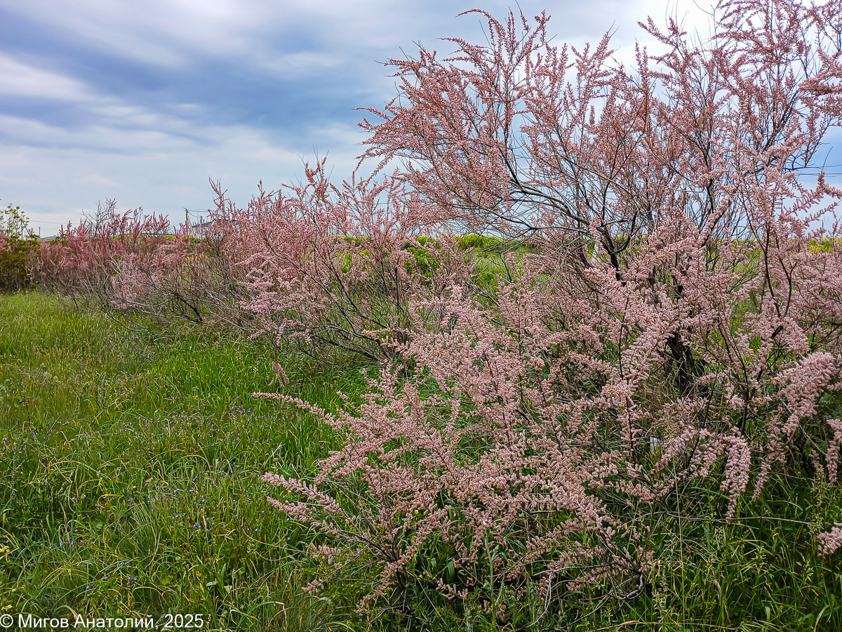 Вдоль дороги на Феодосию из Старого Крыма цветет розовый тамариск. Очень красиво на фоне ярко-зеленой травы. Цветочки у тамариска мелкие, едва разглядишь, зато их очень много. Густой медовый запах разносится до самой обочины. Небо не по-крымски суровое. То и дело пытается пойти дождь, но дальше нескольких капель дело не доходит. Асфальт ровный. Дорога не сильно загружена, но и не сказать, что совсем пустая. Автомобили идут в обе стороны. В Феодосии первым делом пошли к морю. День пасмурный, небо в облаках, но не холодно. И полный штиль. Кто-то в куртках, а другие уже разделись до футболок. Погода позволяет и то, и другое. Сегодня +18. Читатели спрашивают, как там в Феодосии дела с мазутом? Мы специально побродили по пляжу, ничего подозрительного не обнаружили. Камни чистые. Сетей для улавливания мазута не видно. Как там будет, когда вода в море прогреется, я не знаю, но пока никаких признаков. Вода кристально чистая. Но холодная. За 9 лет крымской жизни мне случалось пару раз купатьс