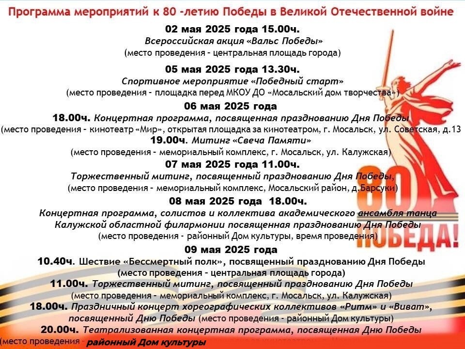 ⭐Друзья! Сегодня в районном Доме культуры: 🔸18:00 Праздничный концерт хореографических коллективов "Ритм" и "Виват", посвященный Дню Победы 🔸20:00 Театрализованная концертная программа, посвященная Дню Победы. #АдминистрацияМРМосальскийРайон
