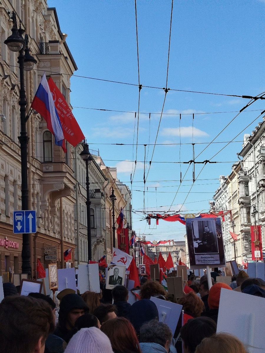 В центре Северной столицы началась памятная акция. В пятницу, 9 мая, на Невском проспекте в Петербурге проходит шествие «Бессмертного полка». Оно проходит в очном формате впервые с 2021 года, фотографиями с мероприятия поделились горожане в соцсетях. Сбор участников акции начался около полудня у станции метро «Площадь Александра Невского». В 14:00 шествие отправилось по центральной магистрали Северной столицы в сторону Дворцовой площади. В акции участвует множество горожан, которые вышли с фотографиями своих родных, сражавшихся в Великой Отечественной войне. Петербуржцы поют военные песни и рассказывают истории о своих героях. По окончании «Бессмертного полка» в 16:00 на Дворцовой начнётся праздничный концерт, посвящённый 80-летию Победы. На нём выступят Александр Розенбаум, Пелагея, Дмитрий Певцов и другие. Отметим, сегодня утром в центре Петербурга прошёл парад Победы. В нём приняли участие более пяти тысяч военнослужащих. Напомним, перед шествием «Бессмертного полка» для пассажиров