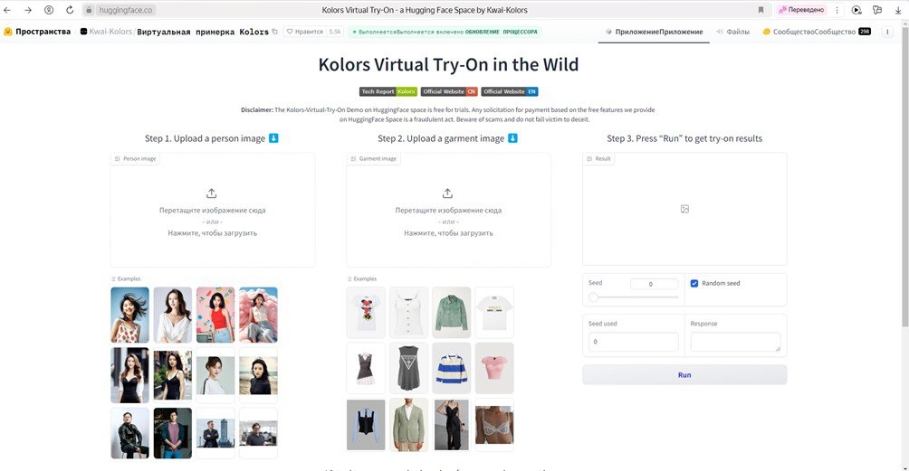 Виртуальная примерка одежды с ИИ по фото – Фишки #Программ Kolors Virtual Try-On — это сервис, доступный на платформе Hugging Face, позволяющий виртуально примерять различные цветовые палитры и стили в реальном времени. Пользователи загружают фотографии и накладывают на них цветовые варианты и текстуры, визуализируя эффект в реальном времени. Интерфейс интуитивно понятен и доступен для всех, независимо от уровня технической подготовки. Huggingface.co/spaces/Kwai-Kolors/Kolors-Virtual-Try-On — инструмент для экспериментов с модой, экономящий время и ресурсы на покупки, вдохновляющий на создание уникальных образов. #ПолезныеСсылочки PocoLab.ru