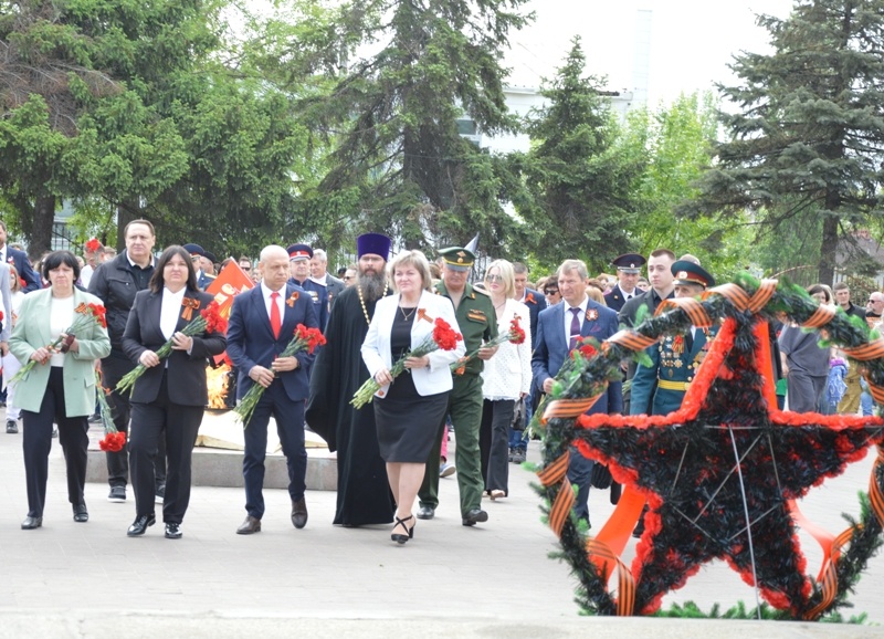 На торжественном собрании в честь 80-летия Победы на мемориальном комплексе в городском парке к горожанам обратились председатель комитета по взаимодействию с общественными объединениями, молодежной политике, физической культуре, спорту и туризму Законодательного Собрания Ростовской области Ирина Жукова, глава города Шахты Людмила Овчиева, председатель городской думы Константин Корнеев, председатель Шахтинского городского Совета ветеранов Александр Пятаков, благочинный приходов Александровск-Грушевского округа иерей Александр Теличкин.