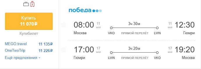 ✈️Москва - Гюмри (Армения), туда и обратно за 11070 рублей