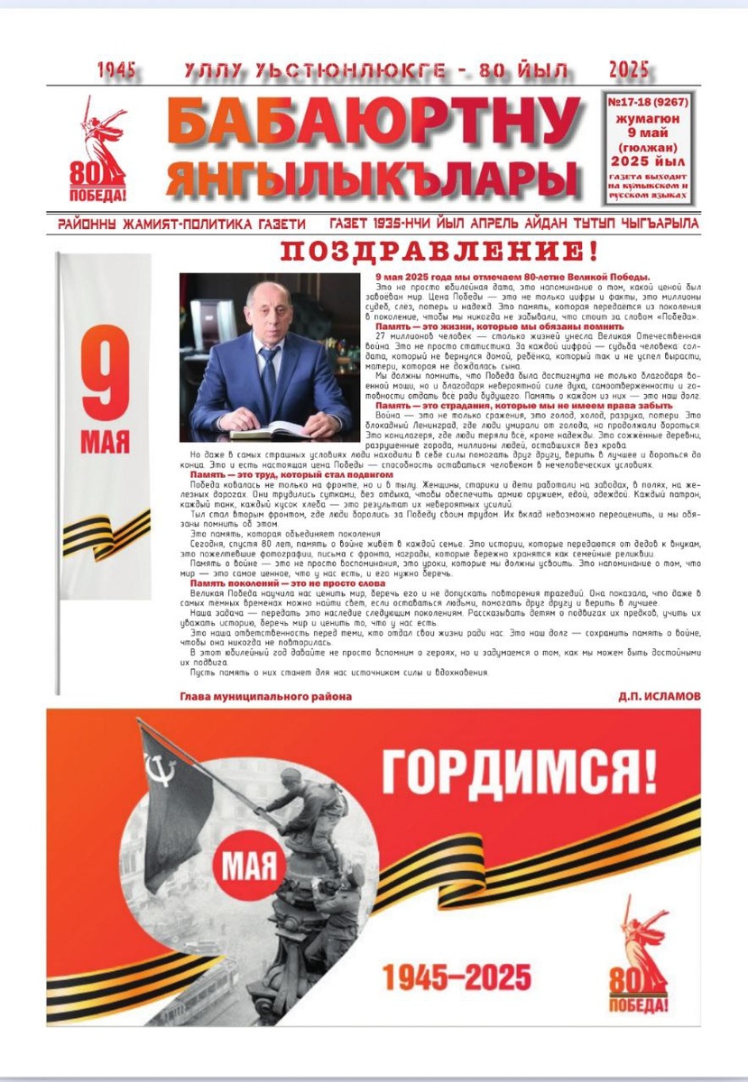 🔥"Бабаюртну янгылыкълары" деген район газетни янгы номерини биринчи бети