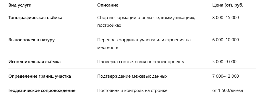 При покупке участка, начале строительства или оформлении собственности встает вопрос: сколько стоит сделать геодезию земельного участка? Для многих это темный лес — расценки сильно разнятся, а понятия вроде "топосъёмка", "вынос точек", "исполнительная схема" звучат непонятно. В этой статье я разберу, из чего складывается цена, какие виды работ включаются, сколько они стоят в Москве и области, и как сэкономить, не потеряв в качестве. Геодезия участка — это комплекс геодезических работ, направленных на определение точного местоположения, формы, рельефа, коммуникаций и границ земли. Эти данные используются при: Сюда входят инженерно геодезические изыскания, вынос точек, топосъёмка и другие услуги. Без этих процедур невозможно ни строительство, ни юридическое оформление земли. Стоимость геодезии участка зависит от объёма и типа работ, сложности рельефа, площади территории и удалённости объекта. Ниже — основные услуги и их средние расценки по Москве и МО: 💡 Примечание: цены актуальны для у