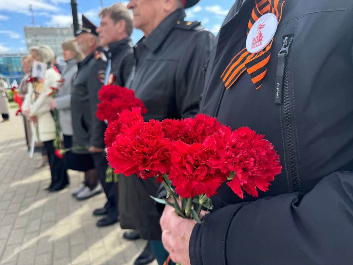В честь 80-летия Победы в Можайске возложили цветы к стеле «Город воинской славы» на Губернаторской площади. Была объявлена минута молчания. Почетный караул юнармейцев установил красную звезду у подножия стелы, после чего все присутствующие возложили гвоздики и тюльпаны как символ благодарности подвигу наших защитников.