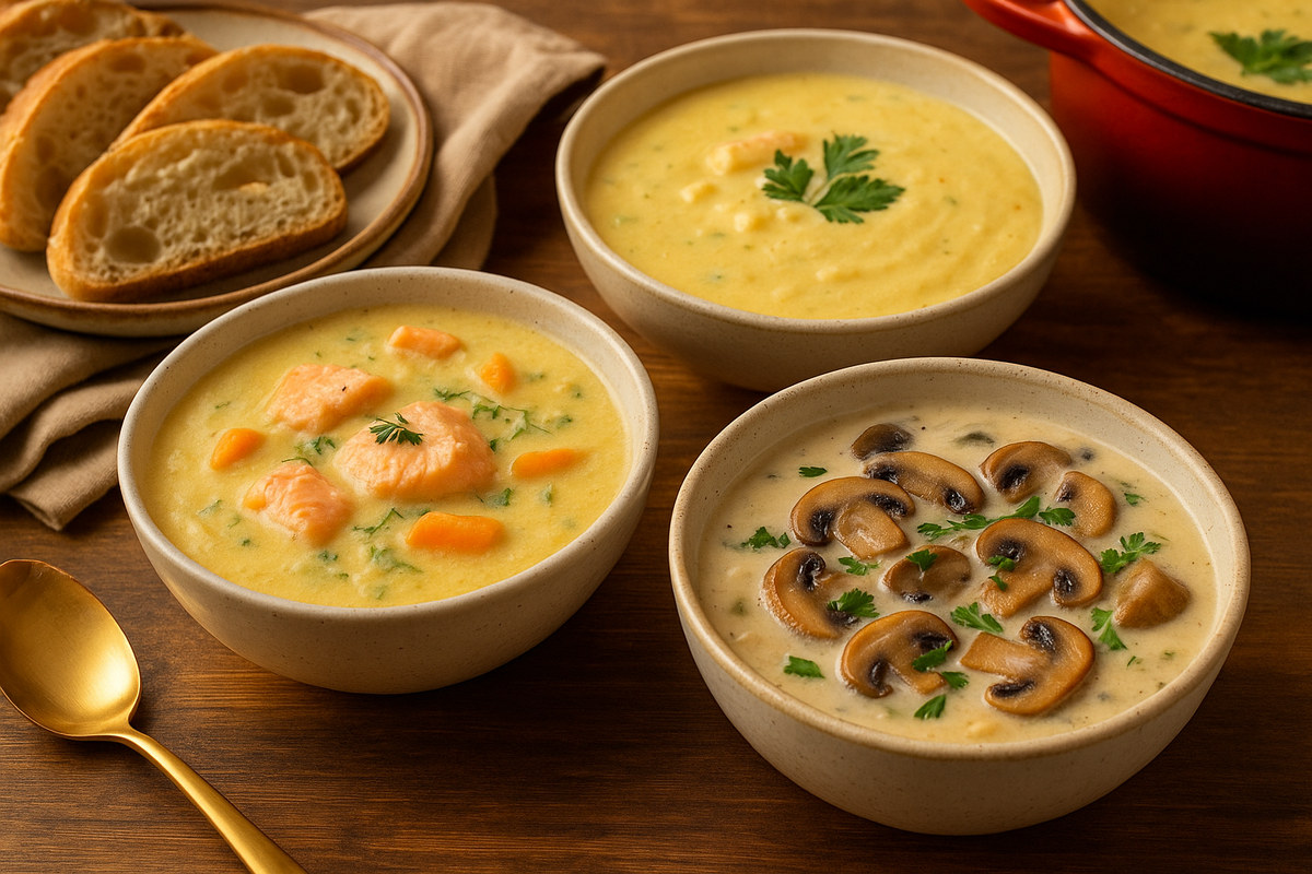 Сливочные супы — это не просто первое блюдо, а настоящая порция уюта в тарелке. Они сытные, нежные, и всегда приходятся кстати.