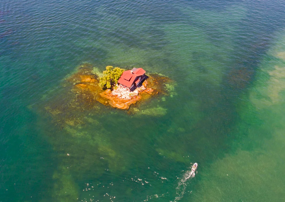 Если бы кто-то попытался построить дом на обеденной тарелке, получилось бы нечто похожее на Just Room Enough Island. Это переводится как "Остров, где едва хватает места". Да, это его название. А ещё его в шутку называют "островом тёщи". И это действительно остров. И действительно обитаемый.